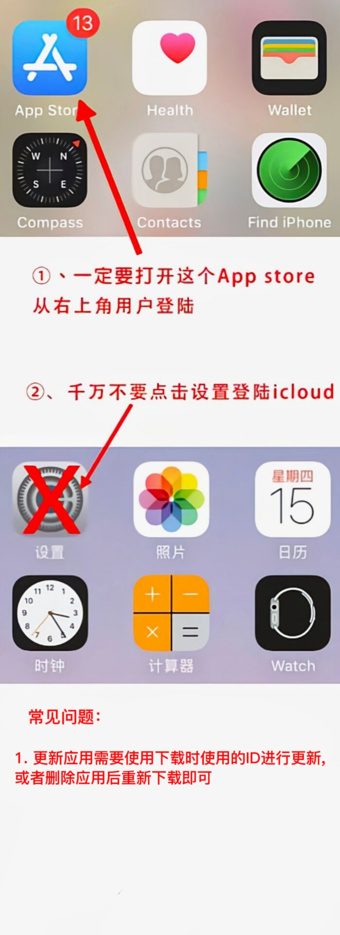 5.仅用于登陆AppStore(下载APP),切勿登陆iCloud(设置ID),如有必要请登陆后关闭查找iPhone。