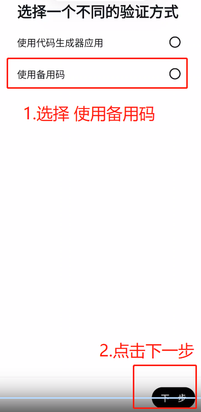 第4步:选择使用备用码,然后下一步